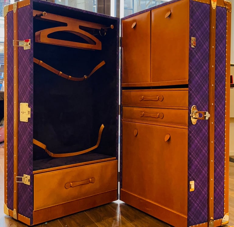 Handcrafted in Como, Italy, this handsome trunk harks back to the Golden Age of travel, blending artisan design heritage with modern functionality, representing a true expression of "traveling in style."